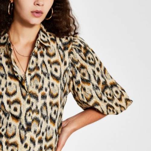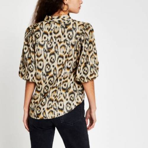 リバーアイランド RIVER ISLAND 茶色 ブラウン ヒョウ柄 レオパード スリーブ 【 SLEEVE RIVER ISLAND BROWN LEOPARD PRINT BALLOON SHIRT COLOR 】 レディースファッション トップス