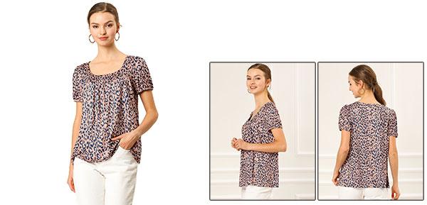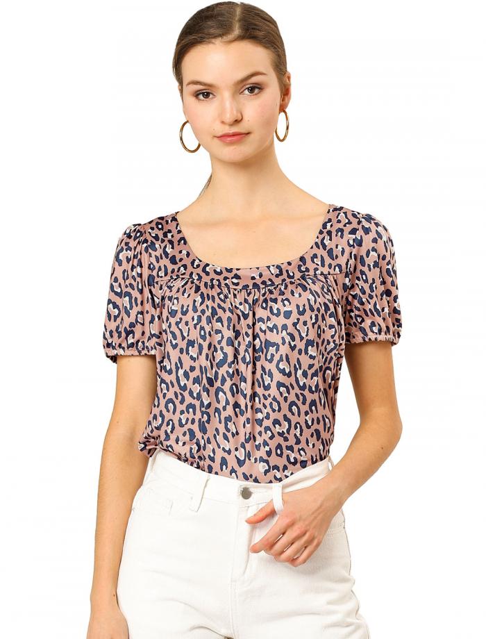 【商品説明】ヒョウ柄の半袖トップスがおしゃれでシンプルな外観に!ジーンズとハイヒールと組み合わせて、魅力を追加します。