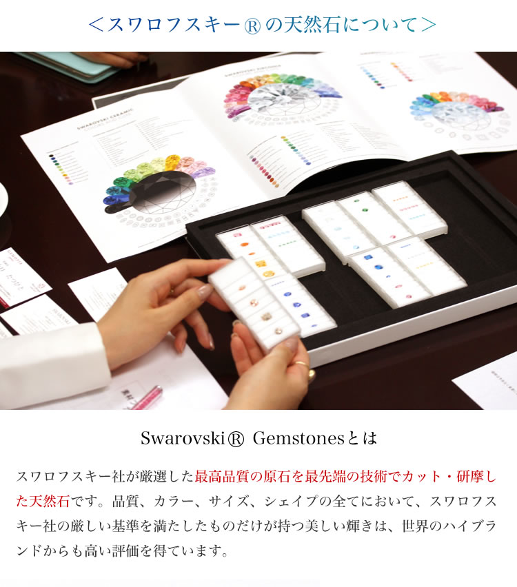 最高級な輝きをあなたに スワロフスキー社の精密カットは、天然石の真の輝きを最大限に引き出します。
