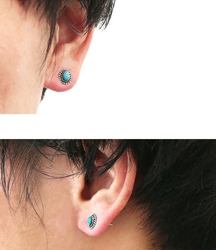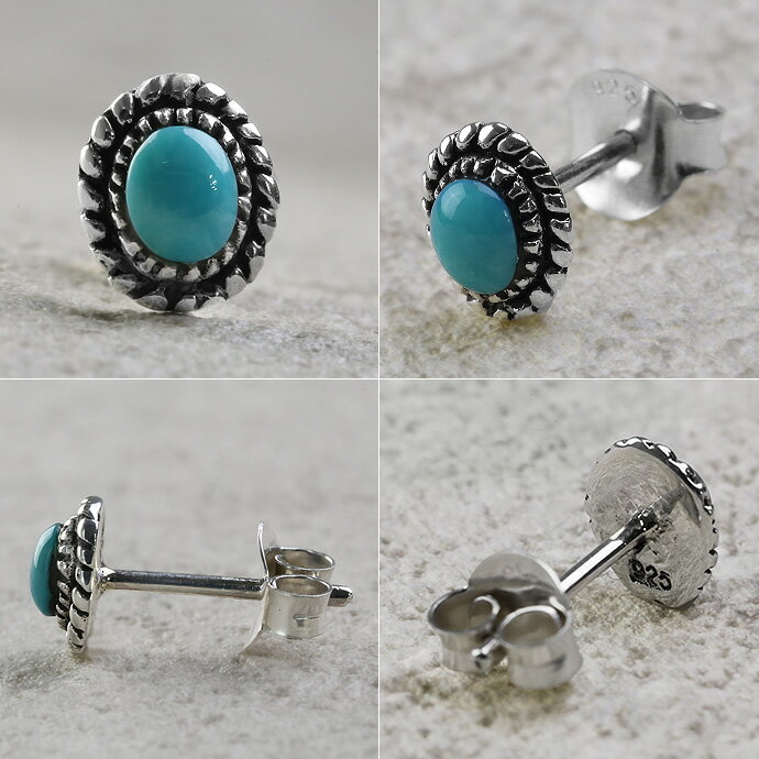 商品詳細 説明ロープで縁取ったようなフレームにオーバル型のターコイズを埋め込んだ個性あふれるデザインのピアス。