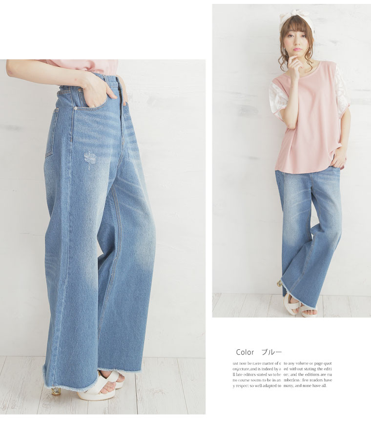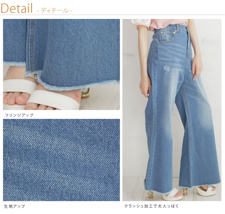 トレンドのフレアデニムパンツ フリンジ加工で抜け感をプラス。