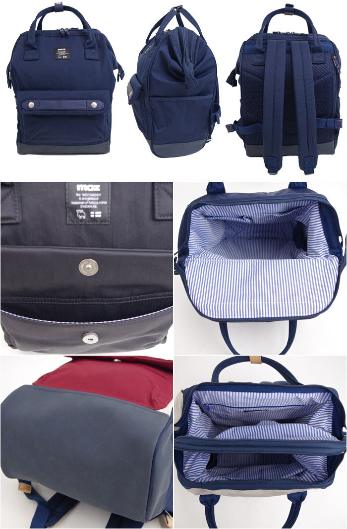 内生地のホワイトとブルーのストライプ柄が爽やかさをプラス◎ブランドオリジナルの「モズポケット」は中に入れる物の大きさに合わせて伸縮する生地を使用しており、何も入れていないときはフラットで場所を取らず邪魔になりません。
